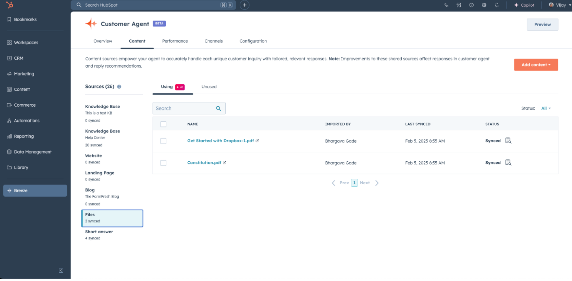 Incorporating diverse file formats into HubSpot does more than just streamline the training process—it also enhances the accuracy of AI-powered customer support tools. By training AI systems with reliable and comprehensive information sources, businesses can significantly improve the performance of their AI agents. This leads to more accurate responses and a better overall customer experience.